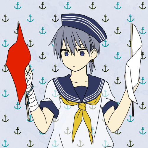 セーラーってかわいいよ本当。元々は軍服なんですよね。セーラー着て手旗信号してるイメージしかないけれど。マリンな感じな法師を描きたかっただけです。