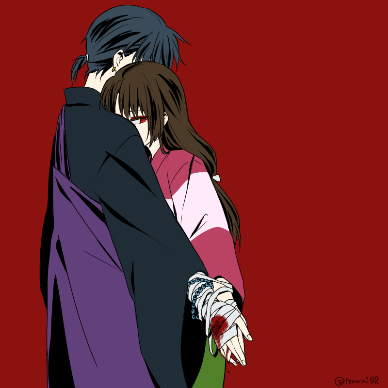 今回は法師が嘘を吐く、珊瑚ちゃんに瘴気の傷のことを隠してる話なんですが、表紙でそれを表現したくて時間ないのに知恵を絞りました~周りの散らしてあるお札は法師の心なので暇つぶしに文字を見てみてください。嘘の中に真実を隠している法師と、珊瑚ちゃんは嘘の中から真実を見つけることができるのか~みたいな。自分でネタ晴らしすんのめっちゃ恥ずかしいんですけど。