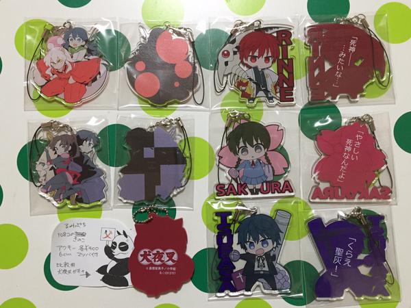 会場でご購入の場合はおまけでポストカードがつきます。通販■アクリルキーホルダー作りました。きのこすけさんが犬かご、弥珊、108がりんさくつばです。