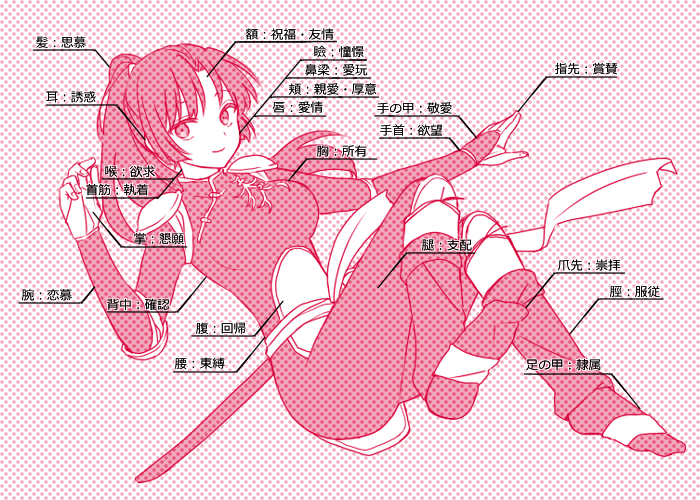 イラストはキスお題の箇所と意味をまとめてみました。これ全部あるんですよ…合同誌すごいですよ…