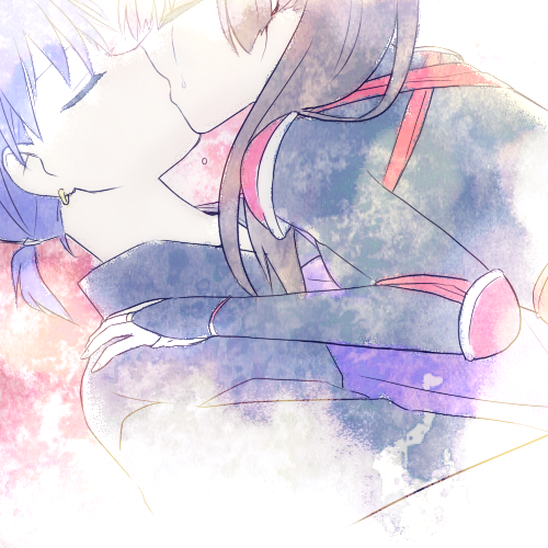 原作のシーンということで構図模写をするべきなのかアレンジするべきなのか長らく考えてしまいまして。最初はキス寸前絵だったりしたのですがキスシーンとリクいただいてるのにそれはちょっと詐欺かなと思いまして結局このような感じに…ちゅー恥かしい(^q^)